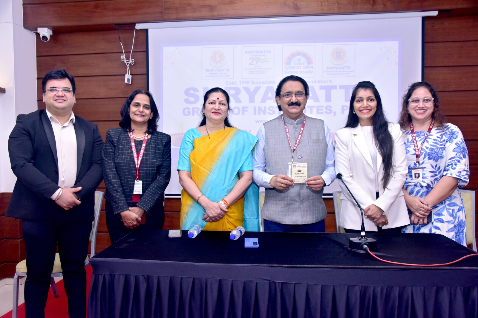 सूर्यभारत उद्योग अनुसंधान ज्ञानपीठ’ पहल की जानकारी देते हुए, बाएँ से — मुख्य कार्यपालन अधिकारी अक्षित कुशल, विभागप्रमुख रसिका गुमास्ते, उपाध्यक्षा एवं सचिव सुषमा चोरडिया, सह-उपाध्यक्षा स्नेहल नवलखा और प्रबंधक स्वप्नाली कोगजे आदि उपस्थित थे।